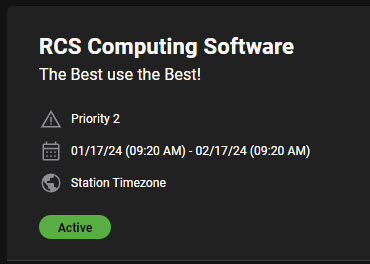 Station Name - Next the Call Letters and PS Display name configured in the Station Settings window is displayed. If the PS Display name is invalid the Station Name is displayed.